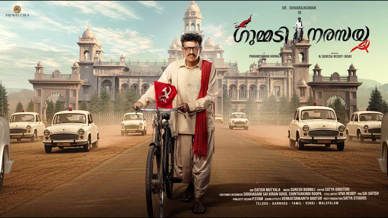 കണ്ണട ധരിച്ച്, ലളിതമായ വെളുത്ത കുർത്തയും പൈജാമയും, ഒപ്പം തോളിൽ പൊതിഞ്ഞ ചുവന്ന സ്കാർഫും ധരിച്ച്, വിശാലമായ റോഡിൽ ഒരു സൈക്കിളിനൊപ്പം നടക്കുന്ന ശിവരാജ് കുമാറിന്റെ ചിത്രമാണ് ഫസ്റ്റ് ലുക്കിൽ അവതരിപ്പിച്ചിരിക്കുന്നത്. പശ്ചാത്തലത്തിൽ നിയമസഭയും കാണാം. ഇടതുപക്ഷ പ്രത്യയശാസ്ത്രത്തിന്റെ പ്രതീകമായ അരിവാളും ചുറ്റികയും ഉൾക്കൊള്ളുന്ന ഒരു ചുവന്ന പതാക സൈക്കിളിൽ തൂങ്ങിക്കിടക്കുന്നു. ഇത് കഥാപാത്രത്തിന്റെ രാഷ്ട്രീയ ചായ്വിനെയും ആഖ്യാനത്തിന്റെ പ്രത്യയശാസ്ത്ര കേന്ദ്രത്തെയും വ്യക്തമായി സൂചിപ്പിക്കുന്നു. വിനയവും ശാന്തമായ ശക്തിയും പ്രകടിപ്പിച്ചുകൊണ്ട് ഗുമ്മടി നർസയ്യയുടെ ആത്മാവിനെ ശിവരാജ് കുമാർ അനായാസമായി ഉൾക്കൊള്ളുന്നു.