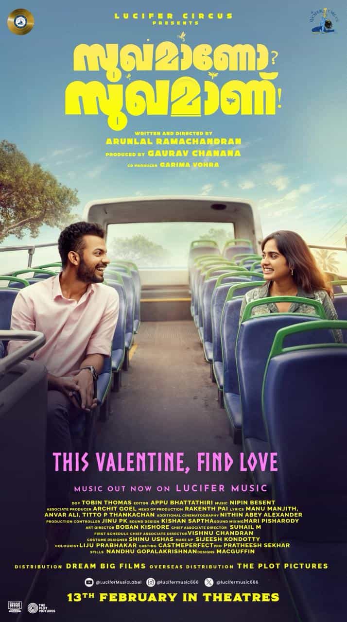 പ്രേക്ഷകരുടെ പ്രിയ താരങ്ങളായ മാത്യൂ തോമസും ദേവികാ സഞ്ജയും ആദ്യമായി സ്ക്രീനില് ഒരുമിക്കുന്ന ‘സുഖമാണോ സുഖമാണ്’ ചിത്രം ഫെബ്രുവരി 13ന് തിയേറ്ററുകളിലേക്കെത്തും. അരുണ് ലാല് രാമചന്ദ്രനാണ് ചിത്രത്തിന്റെ രചനയും സംവിധാനവും നിര്വഹിച്ചിരിക്കുന്നത്. ലൂസിഫര് സര്ക്കസിന്റെ ബാനറില് ഗൗരവ് ചനാനയാണ് ചിത്രത്തിന്റെ നിർമ്മാണം നിർവഹിക്കുന്നത്. സുഖമാണോ സുഖമാണ് ചിത്രത്തിന്റെ മറ്റു പ്രധാന കഥാപാത്രങ്ങളെ അവതരിപ്പിച്ചിരിക്കുന്നത് ജഗദീഷ്, സ്ഫടികം ജോര്ജ്, കുടശ്ശനാട് കനകം, നോബി മാര്ക്കോസ്, അഖില് കവലയൂര്, മണിക്കുട്ടന്,ജിബിന് ഗോപിനാഥ്, അബിന് ബിനോ, തബ റീമ, ഗായത്രി മയൂര, സന്ധ്യാ മനോജ് തുടങ്ങിയവരാണ്.ഡ്രീം ബിഗ് ഫിലിംസാണ് ചിത്രം കേരളത്തിലെ തിയേറ്ററുകളിലെത്തിക്കുന്നത്. ചിത്രത്തിന്റെ ഓവര്സീസ് വിതരണാവകാശം പ്ലോട്ട് പിക്ചേഴ്സ് ആണ്. ലൂസിഫര് മ്യൂസികിനാണ് ചിത്രത്തിന്റെ ഓഡിയോ റൈറ്റ്സ്.