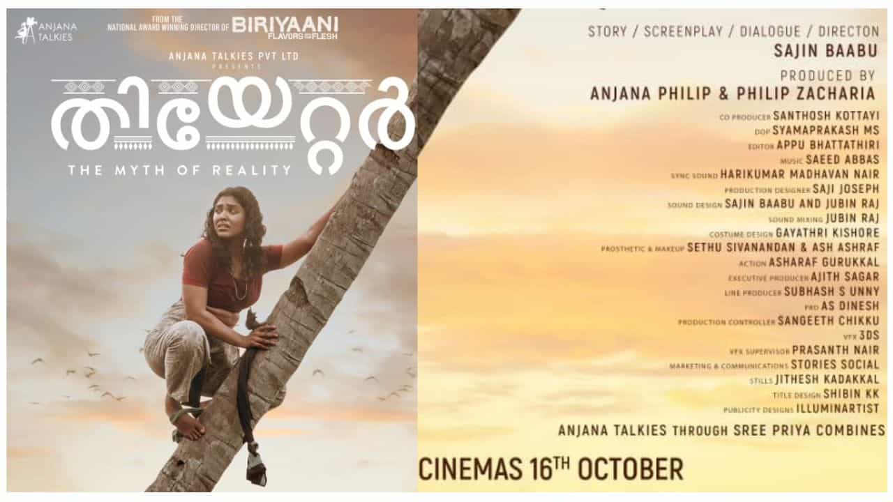 ദേശീയ,അന്തർദേശീയ അവാർഡുകൾക്കൊപ്പം ഒട്ടേറെ അംഗീകാരങ്ങൾ കരസ്ഥമാക്കിയ “ബിരിയാണി” എന്ന ചിത്രത്തിന് ശേഷം സജിൻ ബാബു തിരക്കഥയെഴുതി സംവിധാനം ചെയ്ത ‘‘തിയേറ്റർ: ദി മിത്ത് ഓഫ് റിയാലിറ്റി’’ ഒക്ടോബർ പതിനാറിന് പ്രദർശനത്തിനെത്തുന്നു.